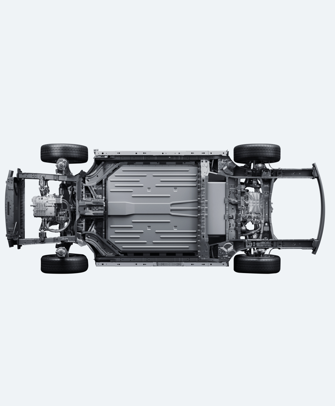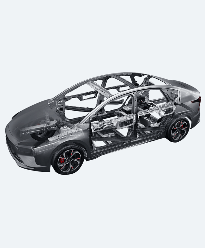 Ocelovo-hliníková vysokopevnostní karoserie tvarovaná za tepla, která využívá 44 kusů ocelových desek tvarovaných za tepla s pevností až 1 500 MPa k vytvoření vysokopevnostního rámu skeletu.